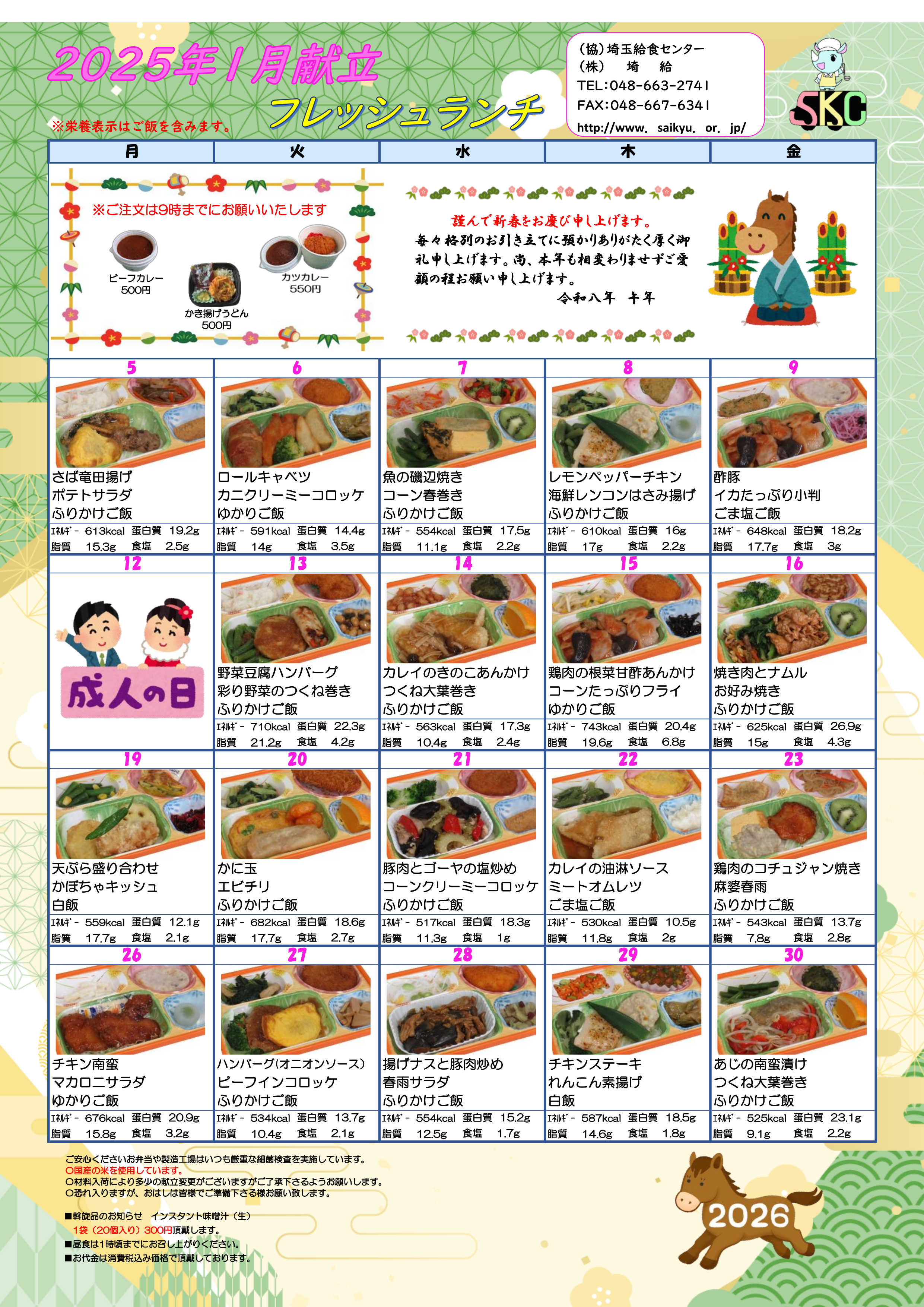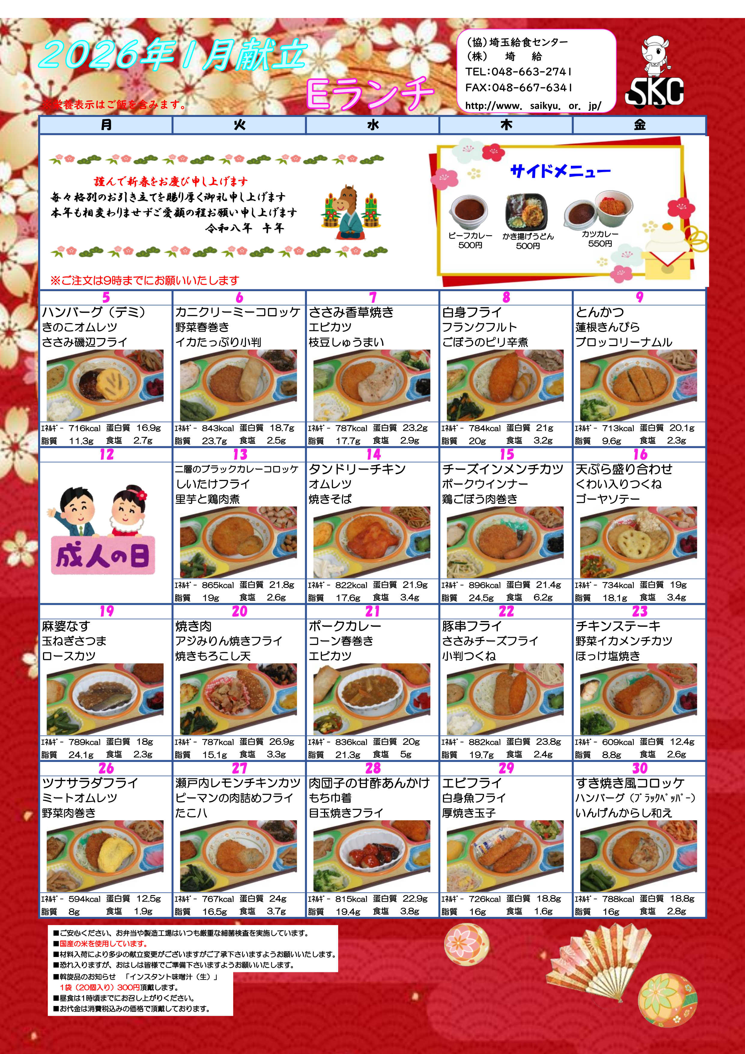 今月のメニュはこちら