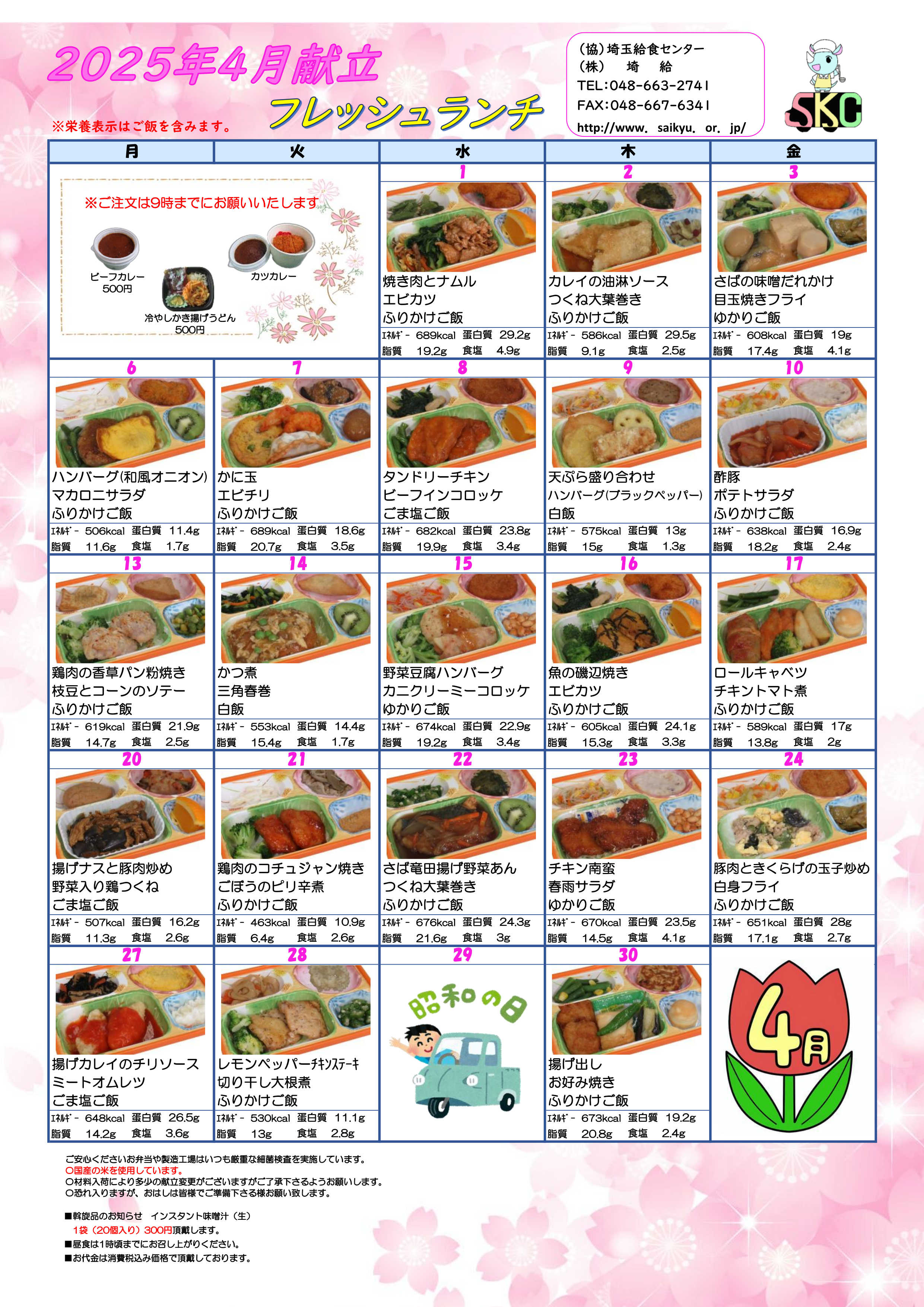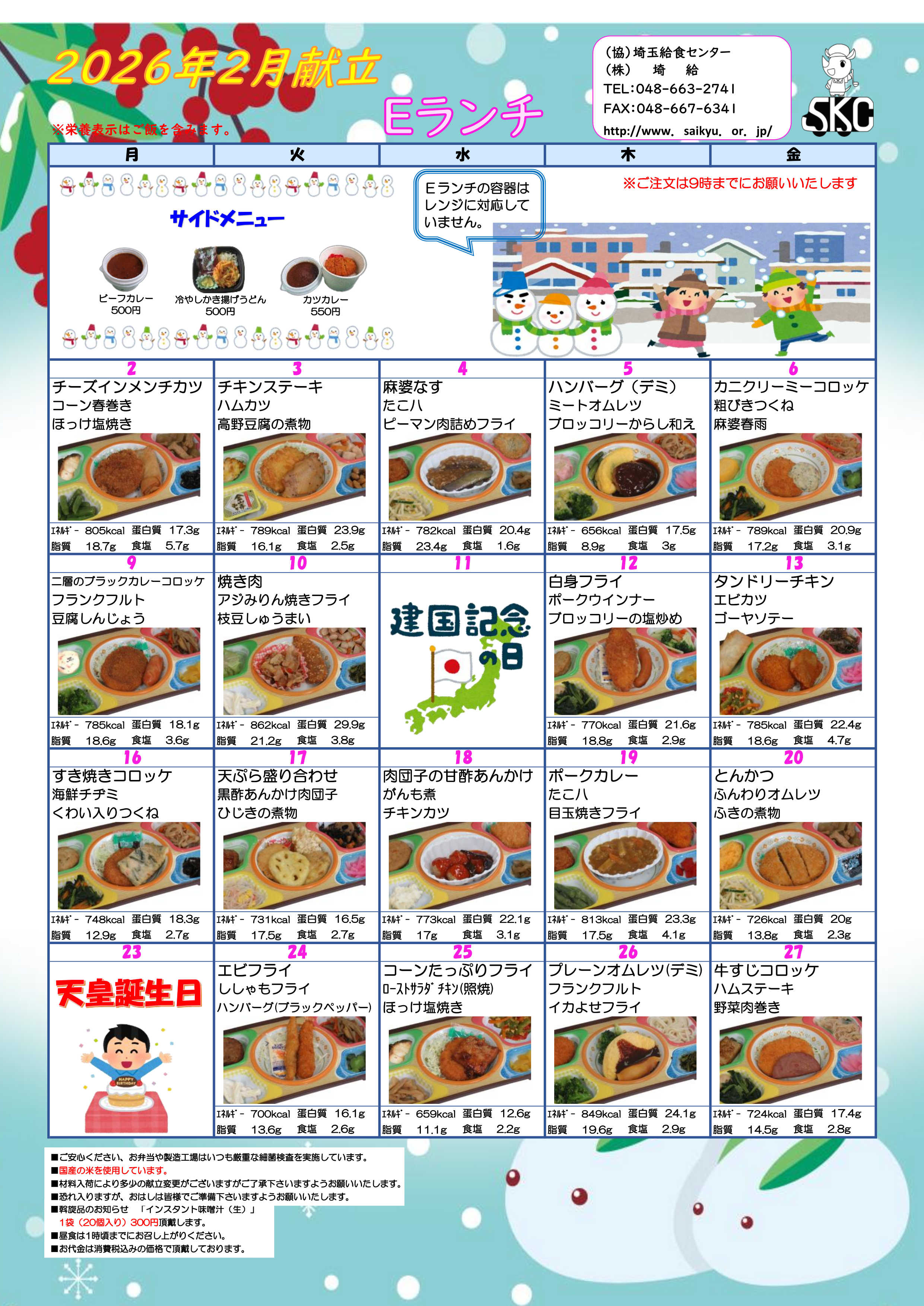 今月のメニュはこちら