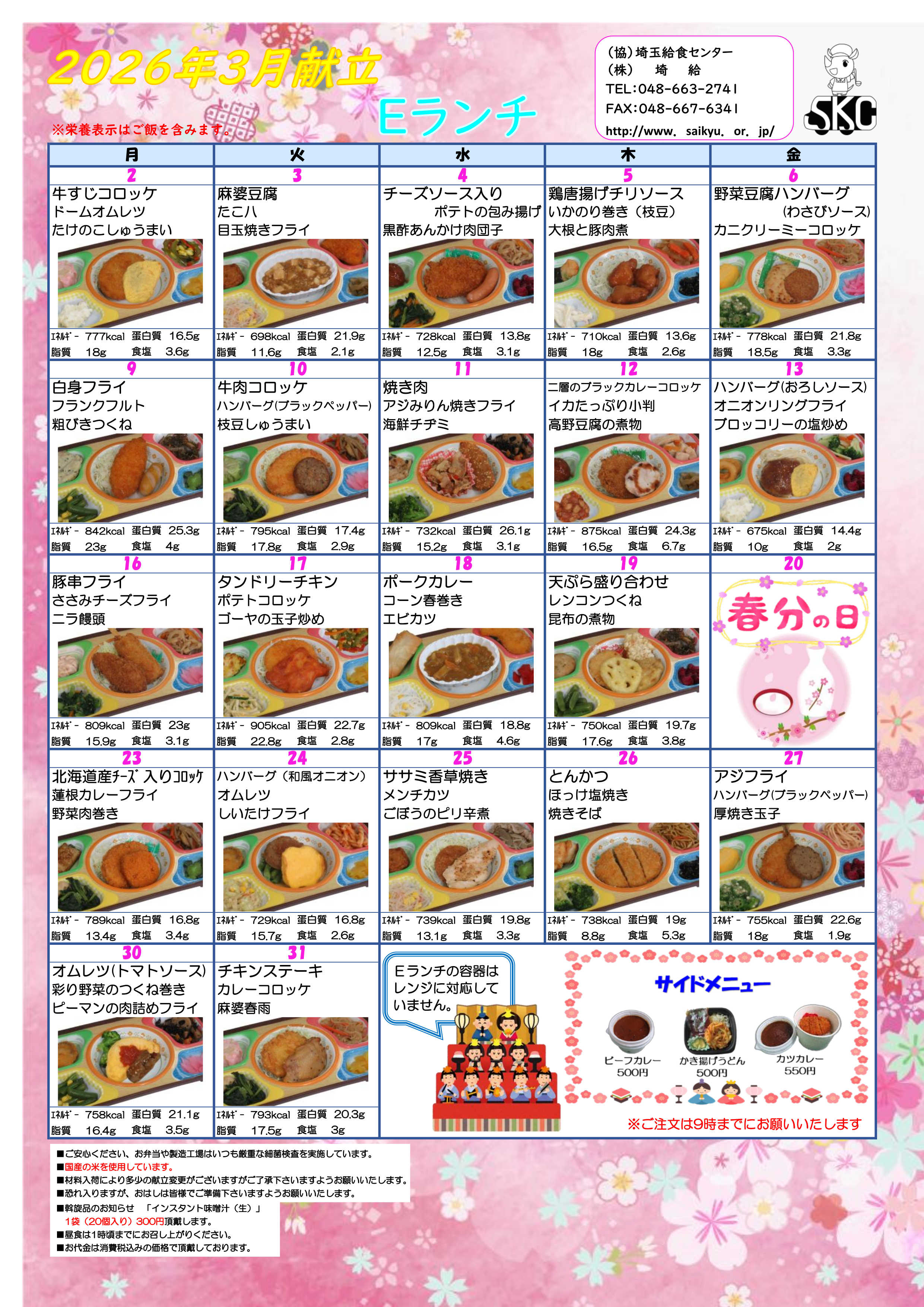 埼玉給食センターの献立はこちらからダウンロードできます。メニューをクリックすると別ウインドウで PDF版のメニューが開きますので、ブラウザのコマンドにて、印刷またはファイルのダウンロードをすることができます。